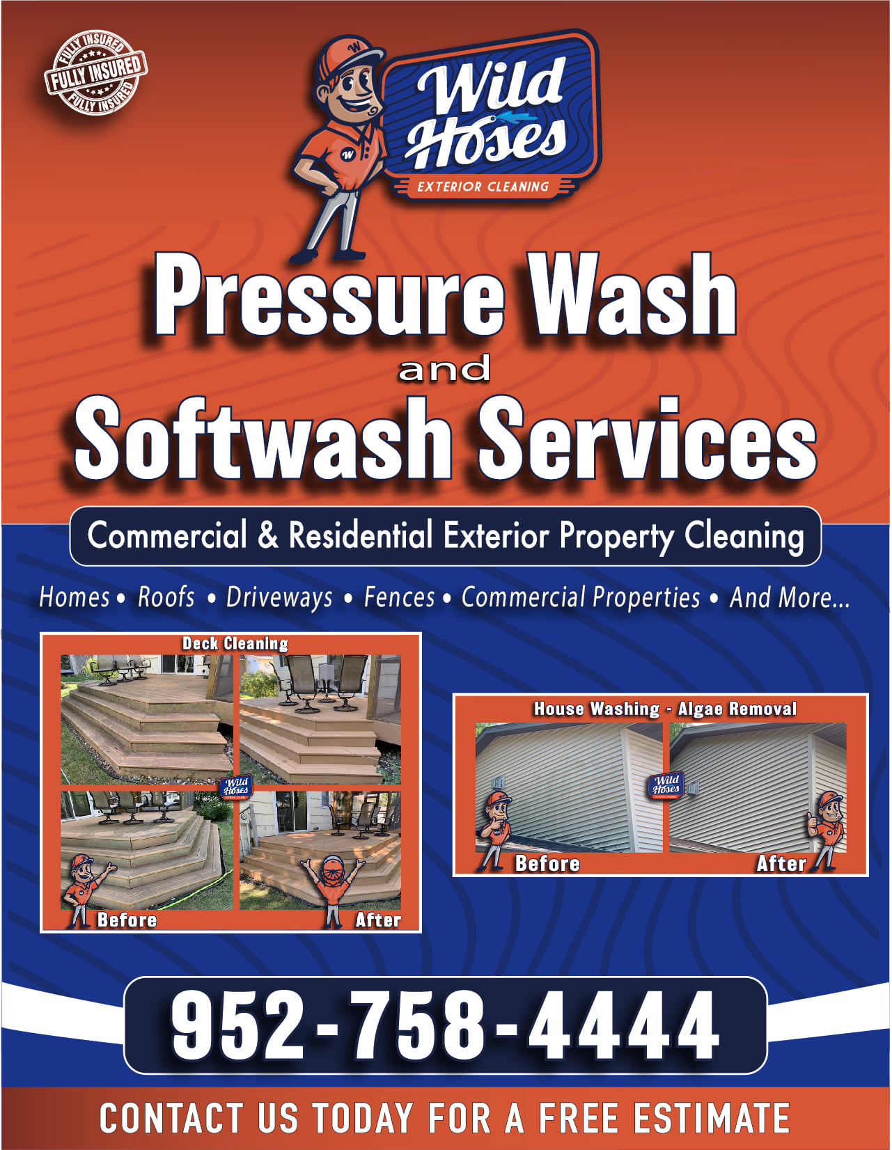 When hiring a pressure washing company, the most important thing you should look for is to make sure they’re fully licensed & insured. Rest assure, Wild Hoses has you covered!